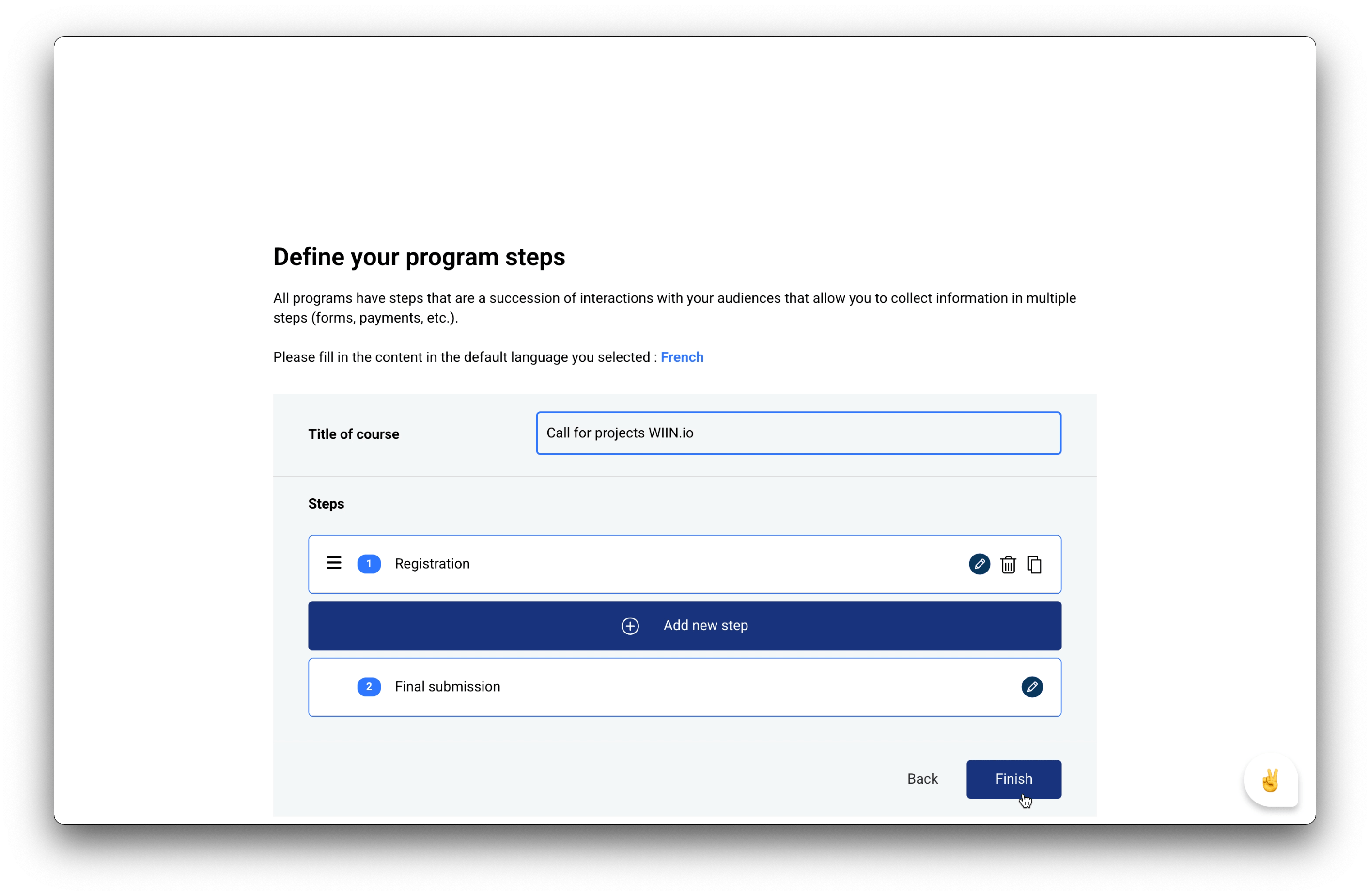 Each step has a form linked to it, and you can repeat the operation as many times as you have steps.To create a form, you must click on the "create" button.