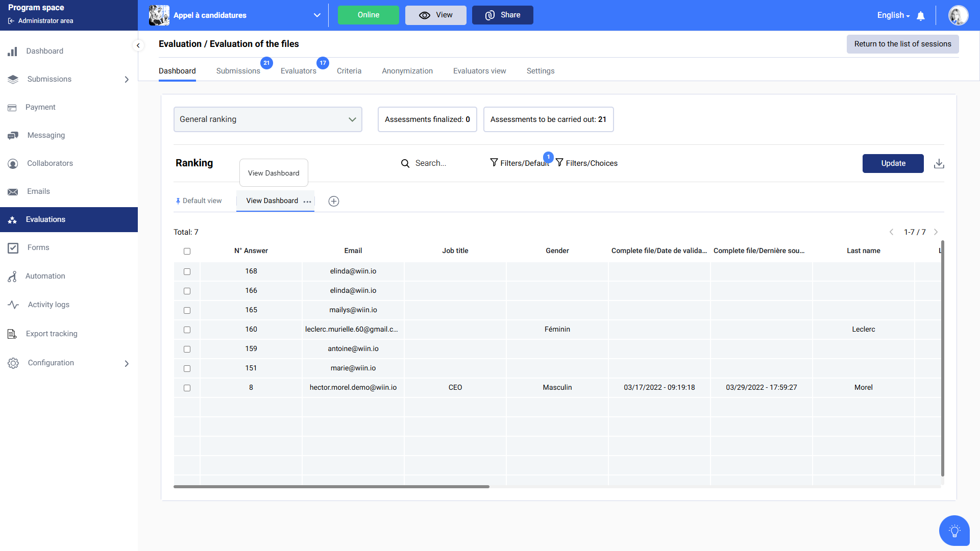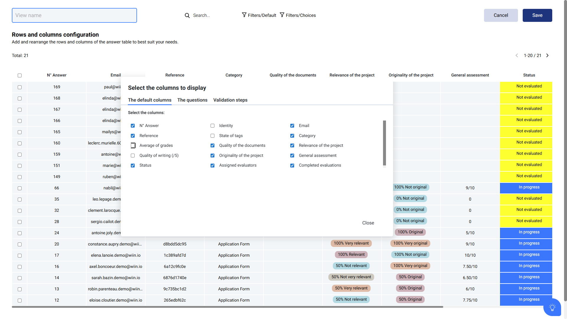In your evaluation session, you can customize the ranking view to display the information you want. To do so, please follow the steps below :
