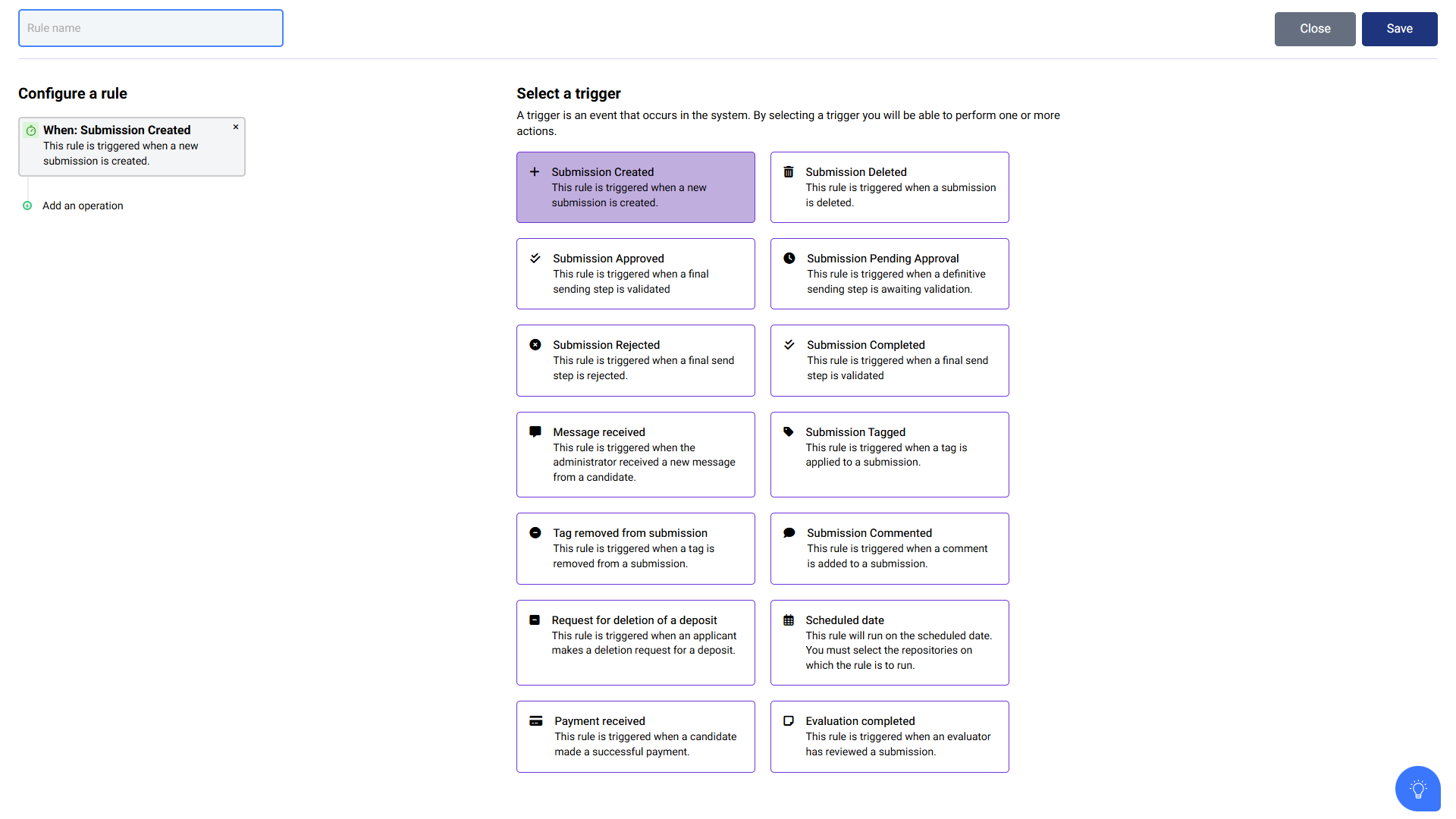 How to create an automation with the trigger : Evaluation completed ? The platform allows you to configure an automation that is automatically triggered when an evaluator has evaluated a submission. To do this, you must use the “Evaluation completed” ...