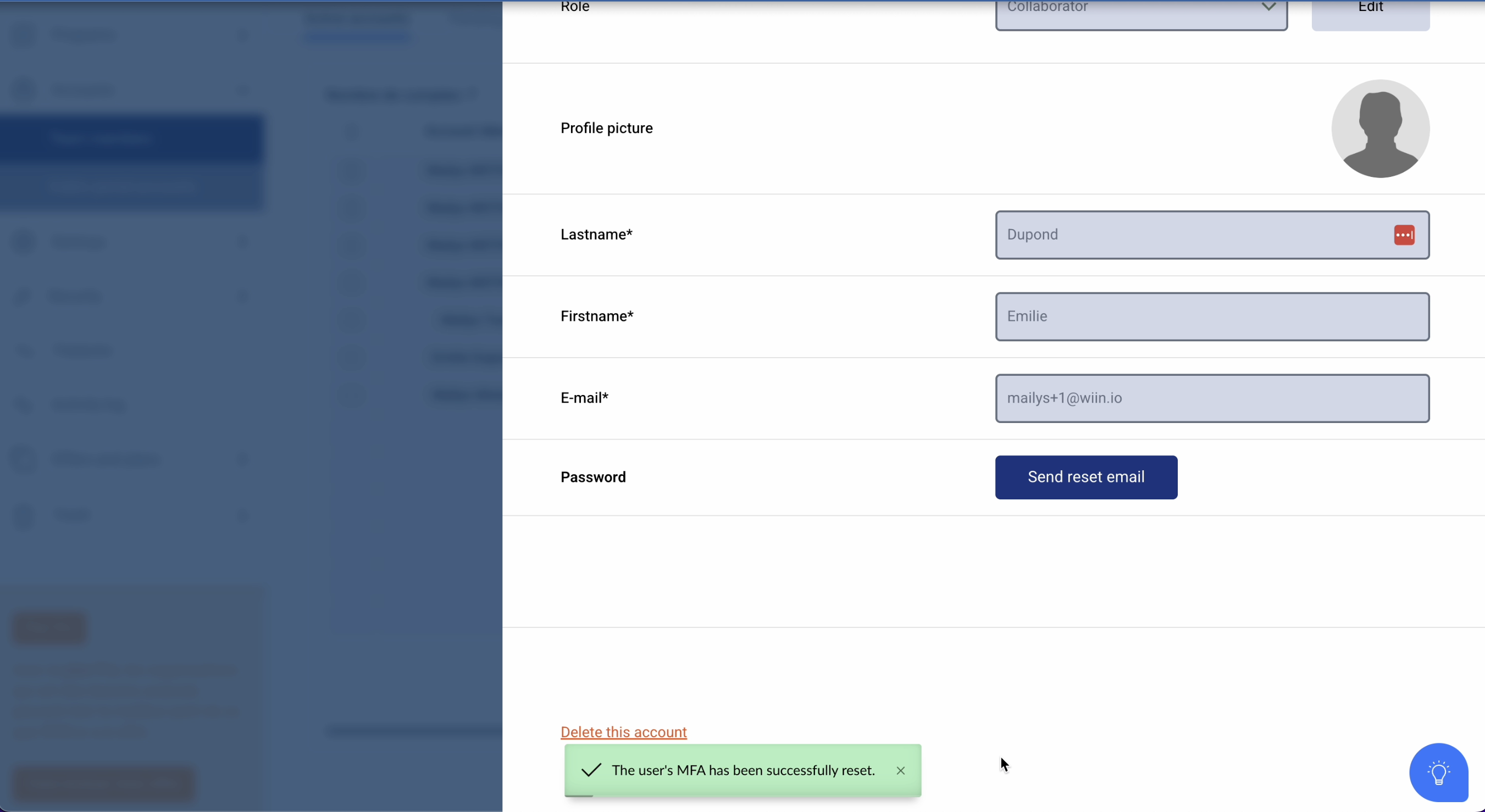 Pour désactiver le MFA des membres d'équipe en tant que propriétaire, veuillez suivre les étapes suivantes :