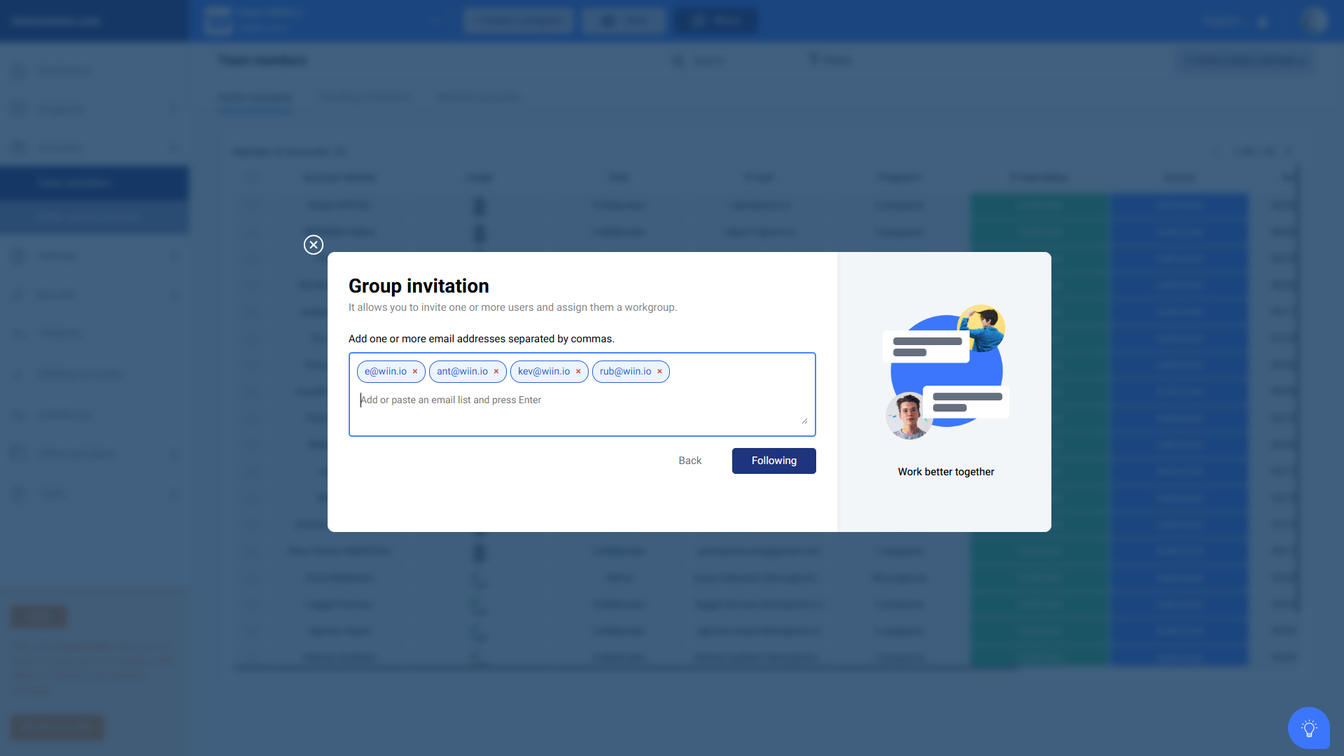 Renseignez les adresses e-mail des personnes que vous souhaitez inviter, puis cliquez sur le bouton "Suivant".