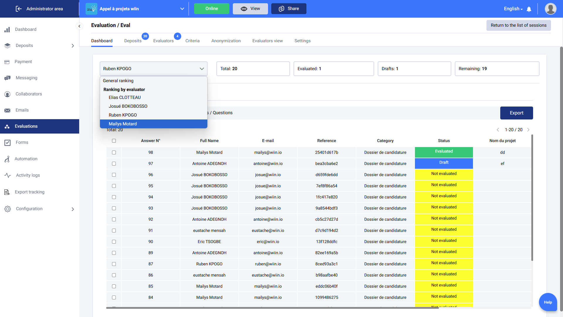 L’administrateur du programme sur l’interface administrateur, est celui qui autorise les évaluateurs à réévaluer un dossier.