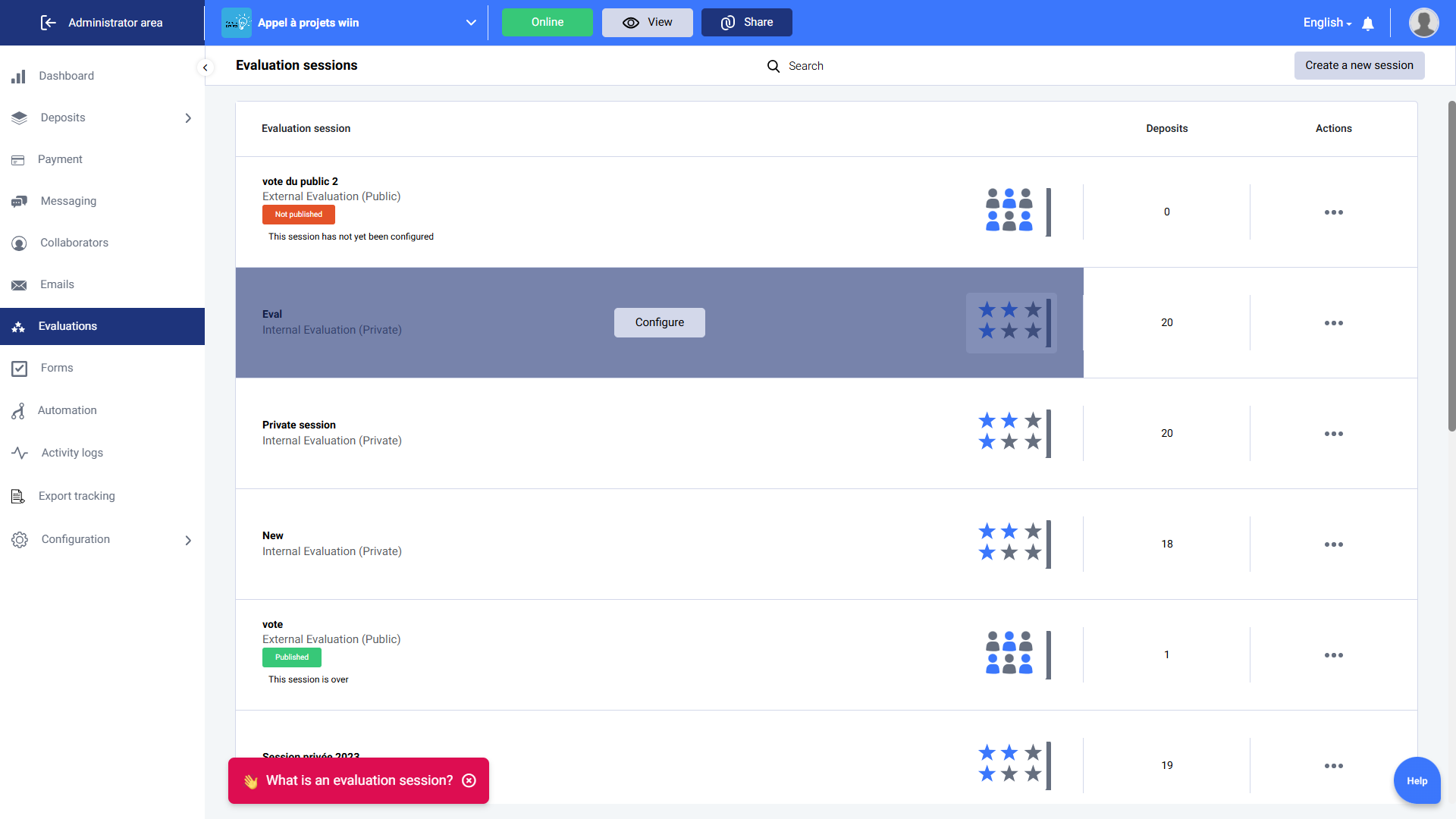 Comment évaluer un dossier ? Vous avez accepté l'invitation pour être évaluateur sur la plateforme. Vous avez maintenant accès à l'interface évaluateur et vous allez pouvoir apprécier les dossiers qui vous ont été attribués. Accéder à la session ...